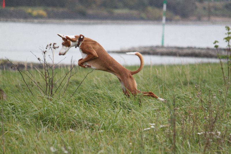 Ich schreibe das, weil sich in letzter Zeit die Anfragen auf Ibicencos häufen, die ableinbar sind, ganz ohne Jagdtrieb womöglich und zuverlässig abrufbar auch von flüchtendem Wild. Mal abgesehen davon, dass es solche nicht gibt, zumindest kann das niemand garantieren (erst recht nicht bei unseren ausgemusterten Ibicencos, die beim Jäger von Welpenbeinen an angefixt wurden!!), macht mich das immer ein bisschen traurig … froh zwar, dass sich immer mehr Menschen für diese wunderbaren Hunde begeistern, aber traurig, weil die Begeisterung offensichtlich nicht dem gilt, was sie im Kern ausmacht und weshalb sie aussehen, wie sie aussehen … die selbstständige Jagd in unwegsamem Gelände! Das ist gerade so, als frage man nach einem Border Collie ohne Hütetrieb … einem Kangal ohne Schutztrieb … oder einen auf 25 km/h gedrosselten Porsche … abwegig, oder?