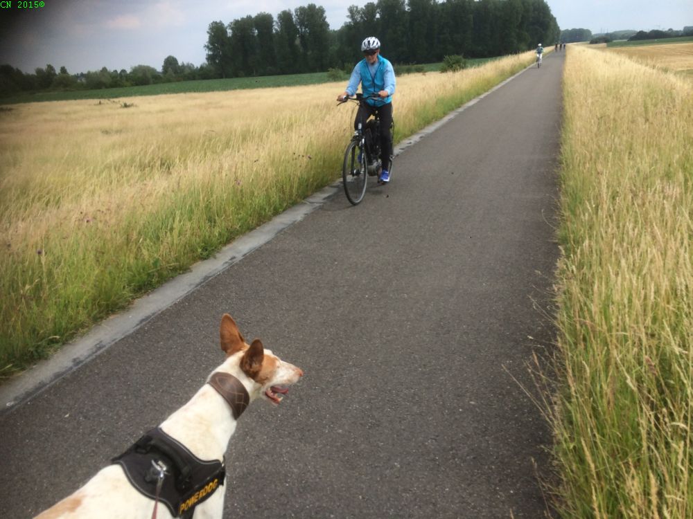 So ziehen sich die Kilometer aufregunglos in die Länge. Kurz vor dem Ziel will auch mit Radfahrern Nr. 35 und 36 einfach kein Stress aufkommen 😦 Zwar würdigen uns die meisten keines Wortes, aber ich ernte auch keine wirklich bösen Blicke oder geringschätzigen Bemerkungen über die Verrückte mit den vielen Hunden und erst recht keine der üblichen Unverschämtheiten wie „Nimm Deinen Köter beiseite oder ich fahr ihn um!“