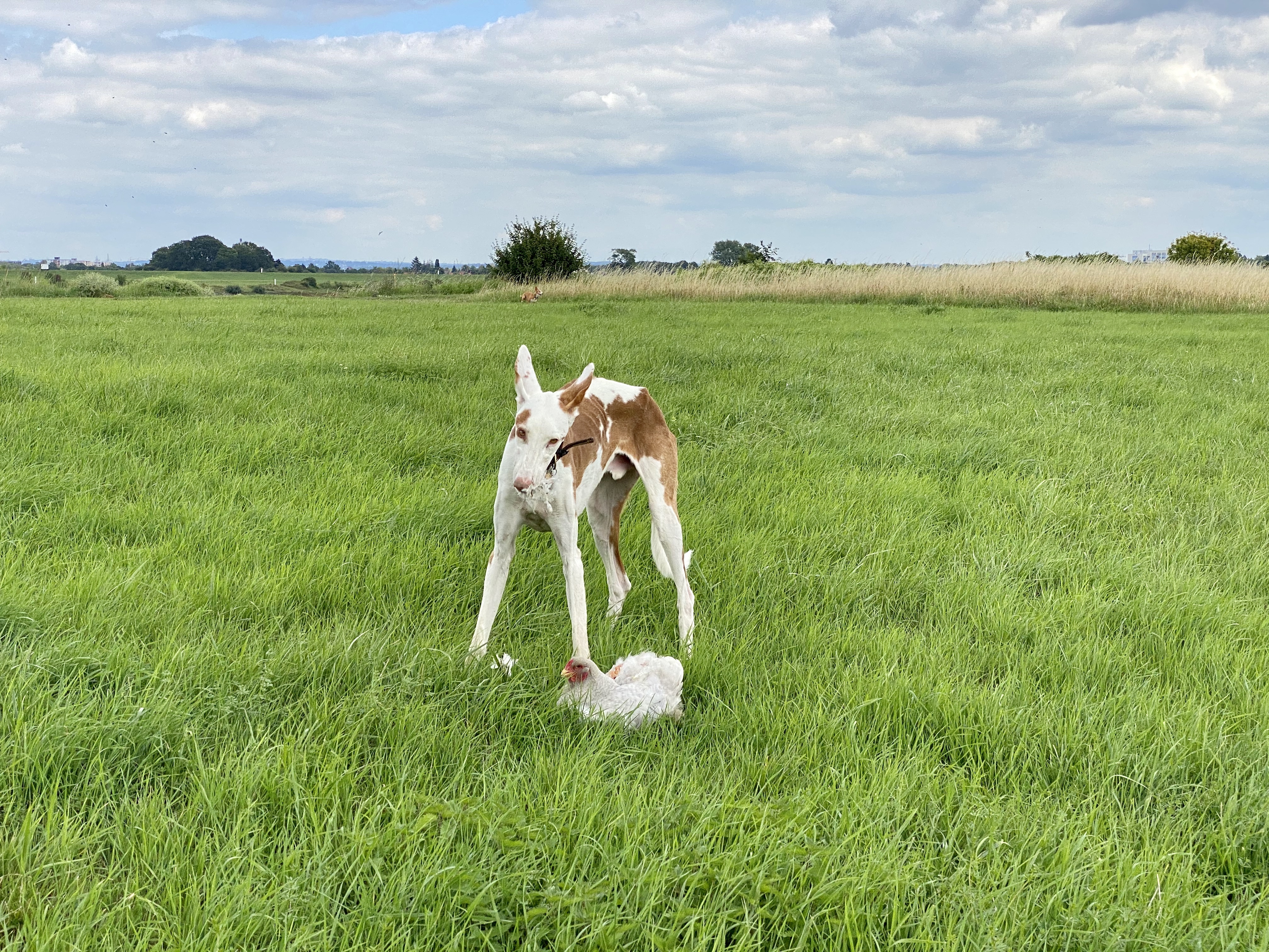 NEPOMUK hat von diesem Eindruck allerdings wenig: Der Hühnerdieb bleibt nun wieder an der Leine.