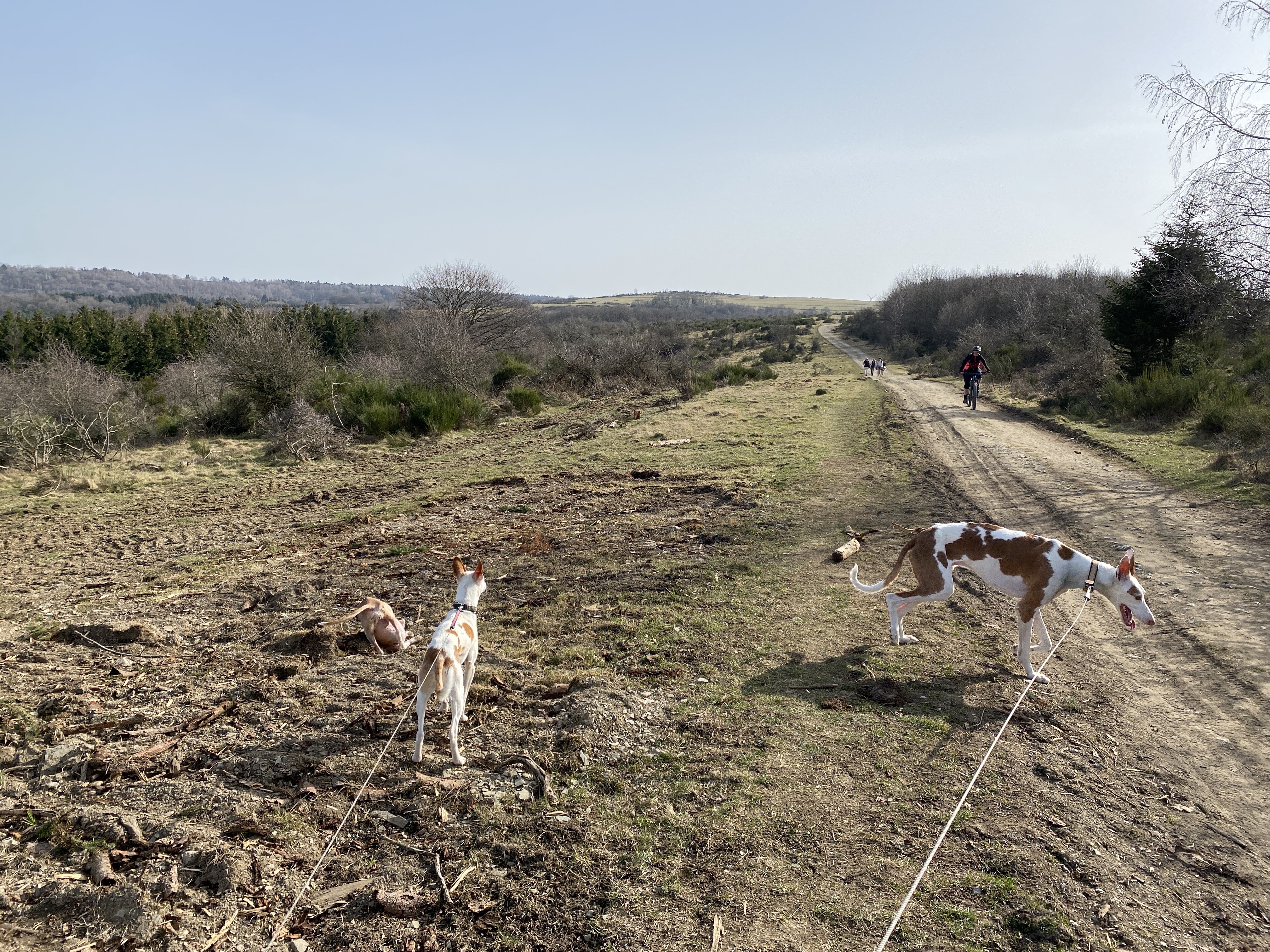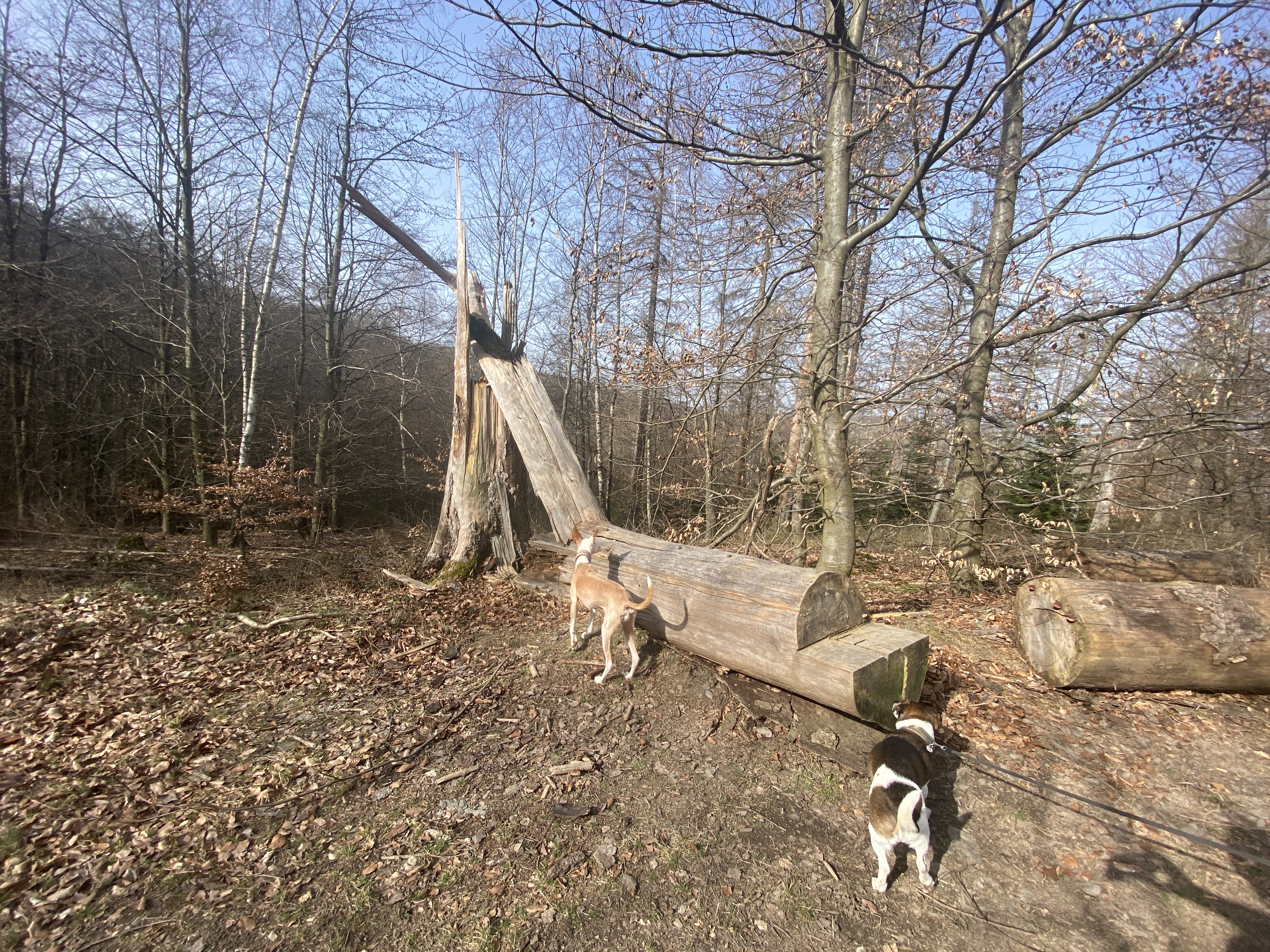 Es war eine – gerade für die kurzbeinigen, nicht mehr ganz so jungen Hunde – anspruchsvolle, aber wunderschöne und abwechslungsreiche Tour fernab von Straßen (bis auf Start und Ende rund um den Wanderparkplatz), in weiten Teilen auf schönen Waldwegen und deshalb auch ohne allzu viele Radfahrer. Die reine Gehzeit betrug ca. 4 Stunden, die Gesamthöhenmeter ca. 470m.