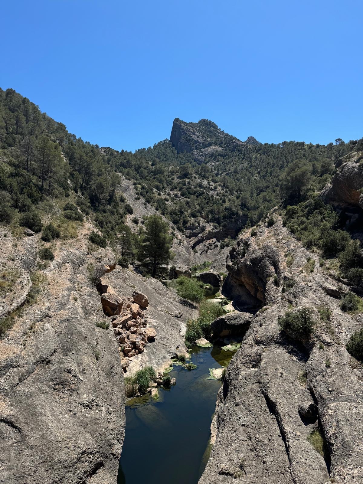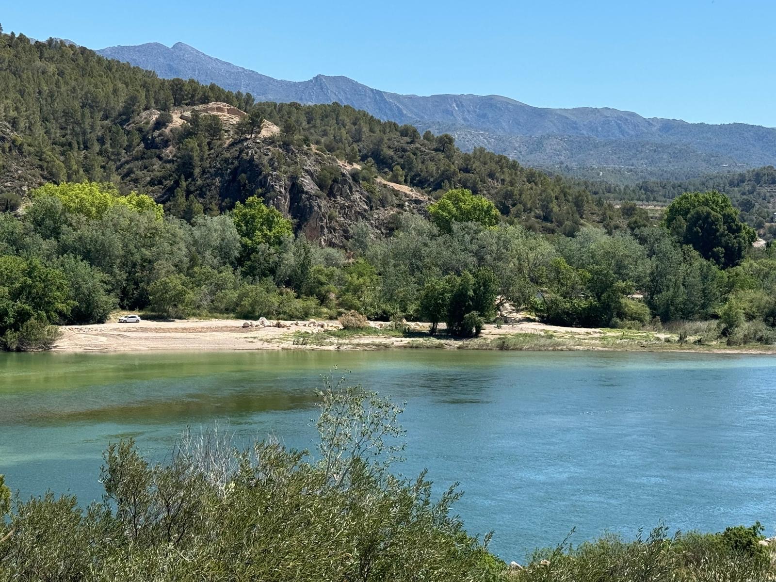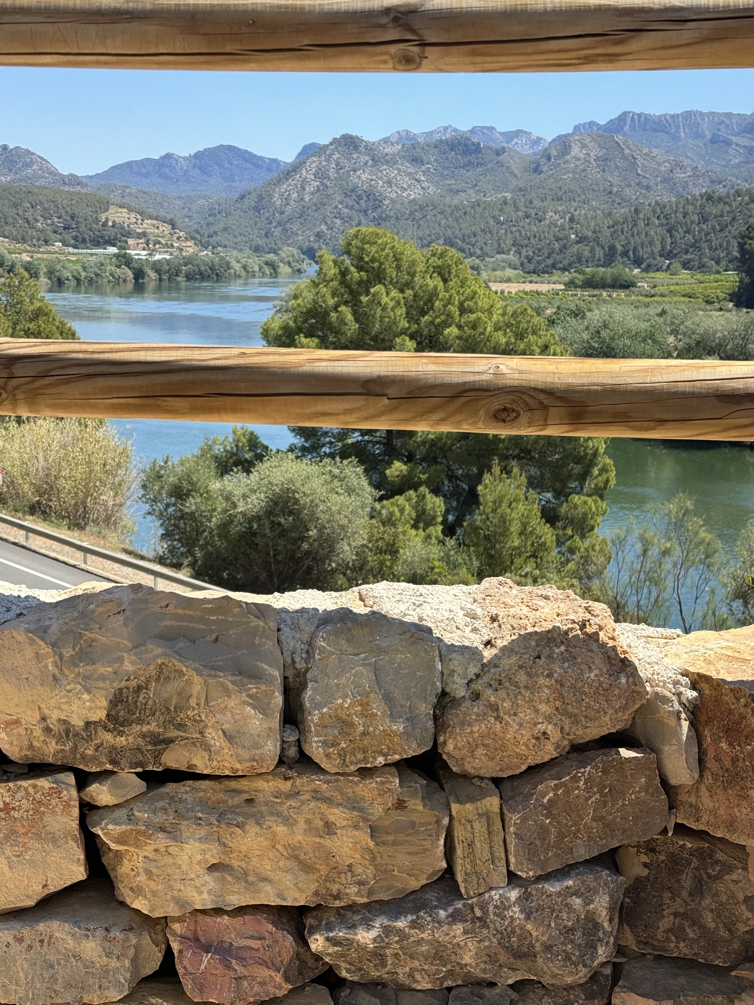 Wir starteten am alten Bahnhof von Xerta, etwas nördlich von Tortosa, und fuhren zunächst ein Stück am schönen Fluss Ebro entlang, bis wir den Bahnhof von Benifallet erreichten. Ab hier wird die pinienbewachsene Felslandschaft (dieser Duft!) immer wieder von meist solarbeleuchteten Tunneln unterbrochen, die willkommene Auszeiten von Sonne und Hitze gewähren. Der längste ist über 700m lang! Man kann sich vorstellen, unter welchen Mühen die Strecke Mitte des 19. Jahrhunderts gebaut wurde. Rund 90 Jahre war sie in Betrieb, bis Anfang der 70er Jahre ein verschütteter Tunnel das Ende des Schienenverkehrs besiegelte.